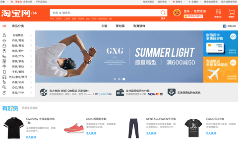 Alibaba、Taobaoをロシアで展開 オンラインリテール 2018.07.09 Alibabaは、ロシアでは既にB2CオンラインサイトTmallと卸売サイトAliexpressを展開しているが、この度マーケットプレイスのTaobao(淘宝網)を展開する。 Taobaoは今まで中国でのみ展開しており、ロシアが初の海外進出国となる。 ※写真は日本でのサイト