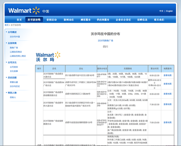 Walmartは成都には、1997年に進出してから現在までにSam’s Club1店舗、Walmart Hypermarket13店舗を出店済み。