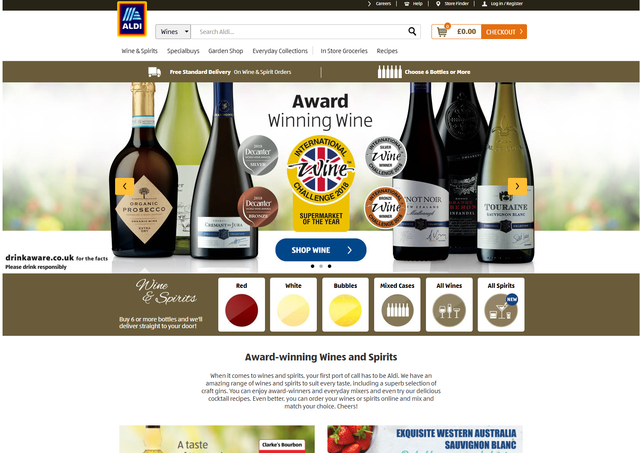 店舗ドイツのハードディスカウンターAldiが、イギリスで酒のスピリッツ類のネット販売を始めたというニュースです。