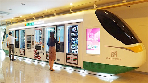 7-11、韓国で自販機型の無人店舗をテスト テクノロジー 2018.08.29 7-11は、韓国で、自販機型の無人店舗をテスをする。 テスト店舗は4店舗あり、そのうち2店舗はSoulの韓国の7-11本社に、1店舗はIncheonのLotte E&Mに、もう一店舗はGyeonggi県AnyangにあるLotte Rent-a-Car本社にある。 店舗は横幅10mの電車のデザインをしており、自販機が5台設置され、飲料、スナック、惣菜、非食品など200アイテムを販売している。また店舗中央には電子レンジと給湯器が設置されている。