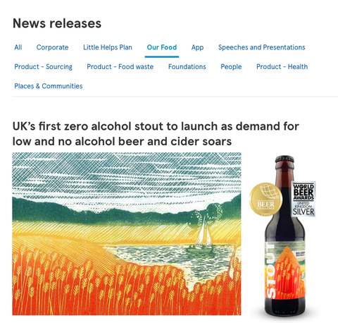 Tesco、イギリスでノンアルコールビールが成長 商品/サービス 2018.09.15 イギリスでも低アルコール(1%未満)やノンアルコールのビールが人気を博しており、Tescoは今週イギリス初のノンアルコールのスタウトビール「Estrella Damm」を発売する。330ml x 3で3ポンド(約440円)。 Tescoは昨年、低アルコール及びノンアルコールビールを2,400万本販売しており、今年は昨対比30%以上の伸びになると予想している。 大手ビールメーカーのHeineken等の商品もあるが、多くは小規模なスタートアップの商品。