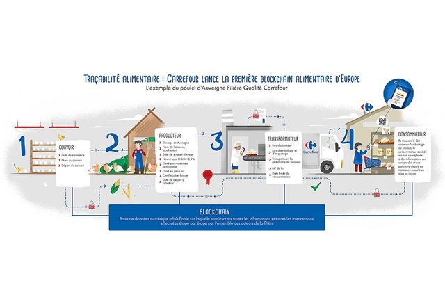Carrefour、イタリアでブロックチェーン技術を活用 テクノロジー 2018.09.22 フランスのハイパーマーケットCarrefourは、イタリアでブロックチェーンを活用して、消費者への情報提供を行う。 具体的には、まずPBの鶏肉のサプライチェーン上での移動を、産地より店舗につくまでブロックチェーン技術を活用してトレースする。消費者は商品に付けられたQRコードを読み取ることで、サーバー上に保存されているその商品のサプライチェーン情報を見ることが出来る。