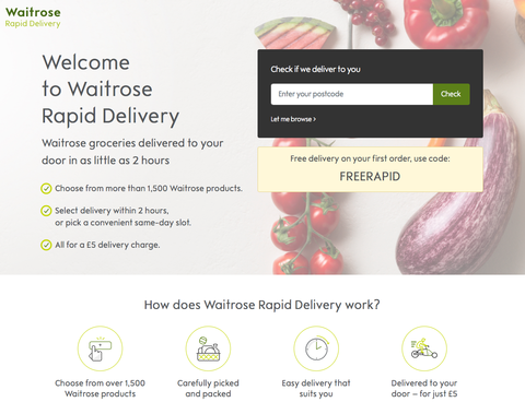 イギリスの食品スーパーマーケットWaitroseは、配送スタートアップ企業On The Dotと提携し、ロンドン市内の特定エリアで2時間以内の配送サービスを実験する。