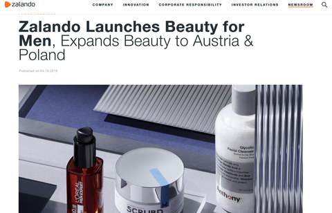 ドイツのファッション・オンラインリテーラーZalandoは、男性用化粧品を発売した。