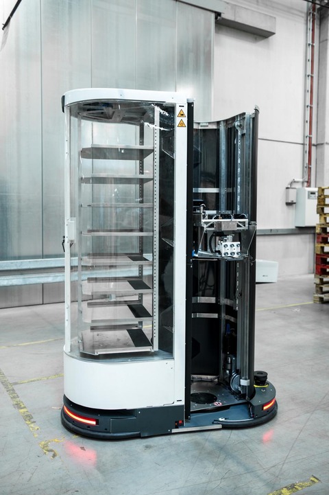 これは今年2月に出資をした物流業務に特化したロボット開発スタートアップ企業Magazino社のもので、「Toru」。Toruは自律走行型のロボットで、商品を保管場所に格納する作業と、格納場所からピッキングする作業を担える。