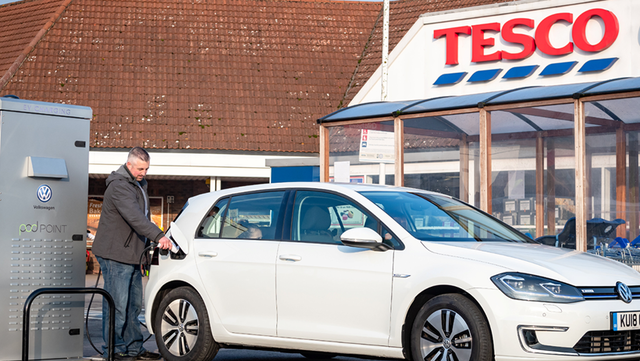 Tescoは、フォルクスワーゲンと提携し、2020年までにイギリス国内の600店舗に電気自動車用の充電設備を設置する。