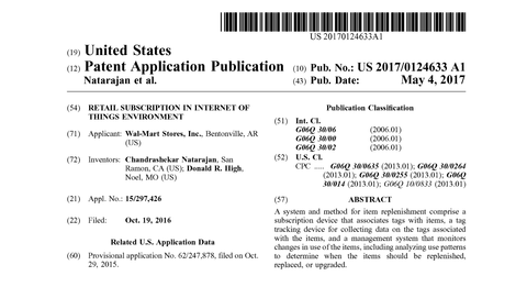 Walmartは、「Retail Subscription of Internet of things Environment」と題する特許を2016年10月に出願していた。