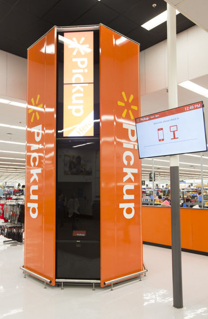Walmartは、5店舗でテストをしていた、ネットで販売した商品を店頭で受け取れる、”Pickup Tower”と呼ぶ自動受取機が好評のため、更に100店舗に展開すると発表した。