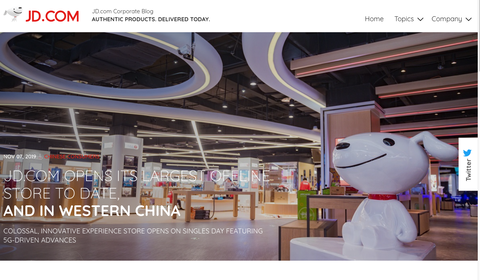 JD.com、5G体験の大規模店をオープン テクノロジー 2019.11.13 中国のJD.comは、5Gを体験できる50000㎡の店舗、JDE-SPACEを重慶に、2019年11月11日オープンする。店舗には、5Gネットワークが張り巡らされ、全ての商品を5Gネットワークに使って試すことが出来る。この店舗内には、Apple公認のオフラインエクスペリエンスストア、Microsoftのスマートホームエクスペリエンスエリアなども設置されている。 出典:JD.com社のWebサイト