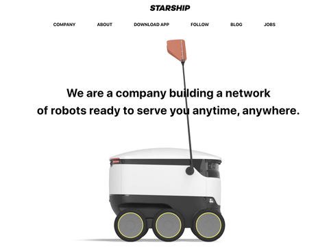 Starship TechnologyはSkypeにいたメンバーなどで設立されたイギリスのスタートアップで、電動の6輪ロボットを開発。ロボットには9台のカメラやGPSセンサーなどが搭載され、オペレーターが周囲の画像を見ることも出来るが、基本として歩道を8km/h程度の速度で自律走行を行う。半径約7キロの範囲で10kg以内の最大3つの買物を運ぶことが出来る。
