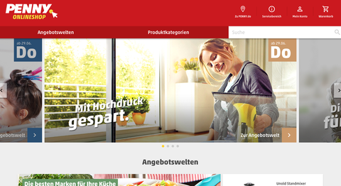 ドイツのReweグループのディスカウント業態Pennyは、オンライン販売サイトを6/29から試験的に4週間オープンした。