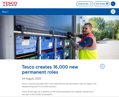 Tescoは既に、COVID-19のパンデミック以後、臨時雇用とは別に3000人を恒久的に雇用している。