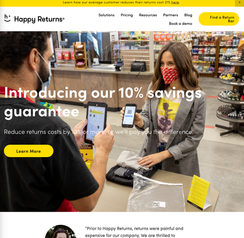 Fedex、HappyReturnsと提携 サプライチェーン 2020.11.05 Fedexは、アメリカで返品代行のHappyReturnsと提携をし、Fedexの店舗での返品を受け付ける。顧客は小売業のサイト、またはHappyReturnsのサイトで返品の申込みをし、QRコードを受け取る。その後Fedexの店舗に商品を持っていけば、1分以内に処理が完了し、即座に返金を受け取れる。 出典:HappyReturnsのWebサイト