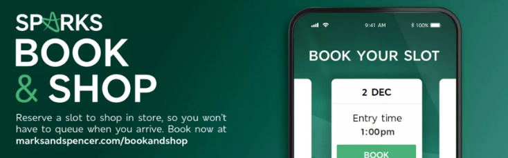 M&S、アプリで入店予約サービスを開始 テクノロジー 2020.11.06 イギリスのMarks & Spencerは、店舗の入店時間を予約できるサービスを、Sparks社のBook & Shopサービスを利用して、イギリス国内の全店で開始をした。 顧客はスマホアプリで30分間隔で入店時間を予約。1世帯から最大2名、列に並ばずに入店できる。