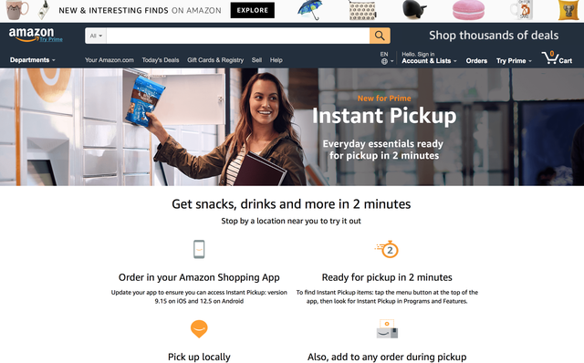 Amazonは、アメリカで「Instant Pickup」と呼ぶ、注文後2分で商品をピックアップできるサービスを開始する。