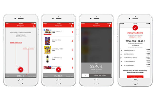 これはMonop Easyと言うスマホ・アプリを使うもので、顧客は自分で商品をスキャンし、そのまま支払いが出来るため、会計のためにレジで並ぶ必要が無くなる。