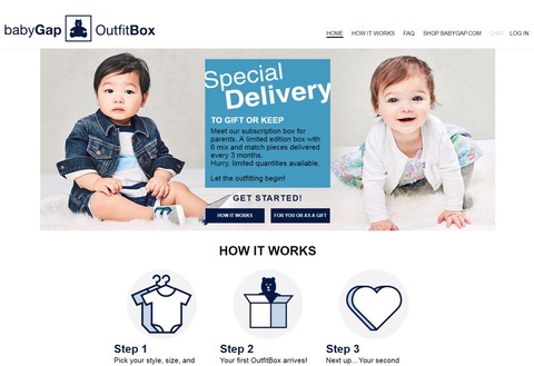 GAPは、0~2Tサイズの乳幼児向け衣料にて、「Baby Gap OutfitBox」と呼ぶサブスクリプションを開始した。