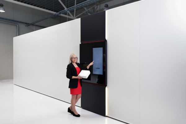 外観はスマートロッカーの様だが、中は小型の自動倉庫でオンライン注文の箱を補完し、タブレット画面での入力に応じて、自動的にそれを出庫する。