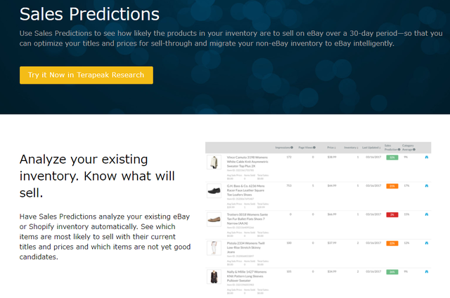 Terapeakの提供するアプリは、ebayやAmazonUSなどでの単品ごとの売行きなどを推測し、表示をする。