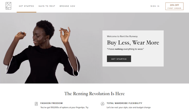 「Rent the Runway」は2009年にJenniefer Hymannなどが始めたスタートアップ。デザイナーによるドレスのレンタルから始めたが、現在では仕事着やカジュアル衣料なども行っている。