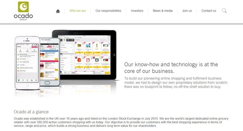 ※Ocado社のHPでの自社の説明。「保有するノウハウとテクノロジーが私たちのビジネスの核です」