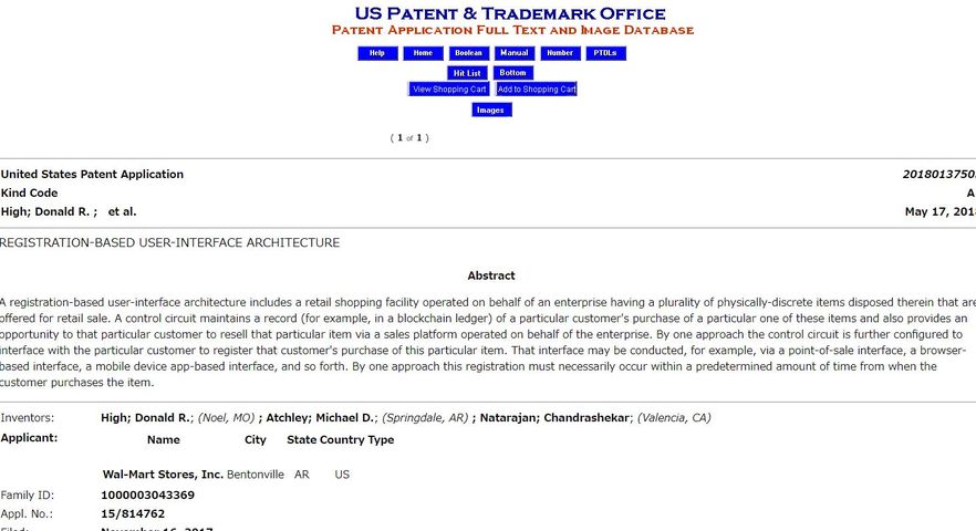 Walmart、ブロックチェーンを使ったデジタル・マーケットプレイス技術の特許を申請 テクノロジー 2018.06.01 Walmartが、アメリカにてデジタル・マーケットプレイスにてブロックチェーンの技術を活用する特許を申請した。 顧客が商品を買った後に、顧客にブロックチェーン上で登録をしてもらい、中古品として再度販売する際に活用するというもの。