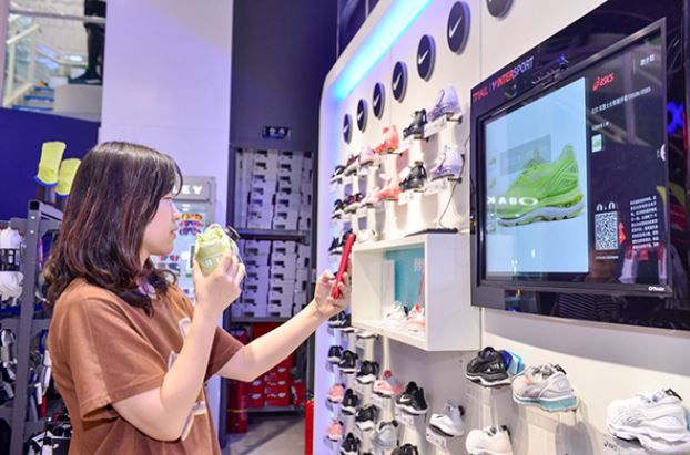 ・スマートシェルフ:靴売り場に設置され、気になっている靴についてのさらに詳細な情報を表示し、顧客が自分の希望に合った靴かどうか判断の上で購買できることを支援